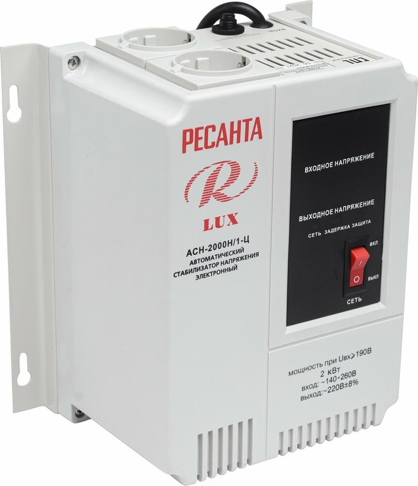 Номинальная мощность 2 000Вт, Тип двигателя Релейный, производство Китай, Серия АСН, Тип напряжения Однофазное (220 В), Размещение Настенноее, Скорость стабилизации 35В/с, Охлаждение Естественное, Класс защиты IP20, Влажность воздуха 80%, КПД 97%, Точность стабилизации 8%, Выходное напряжение 202-238В, Рабочая температура 5-40°C, Частота 50Гц, Выходные розетки-2, Защита от короткого замыкания, от перегрева, от повышенного напряжения, от помех