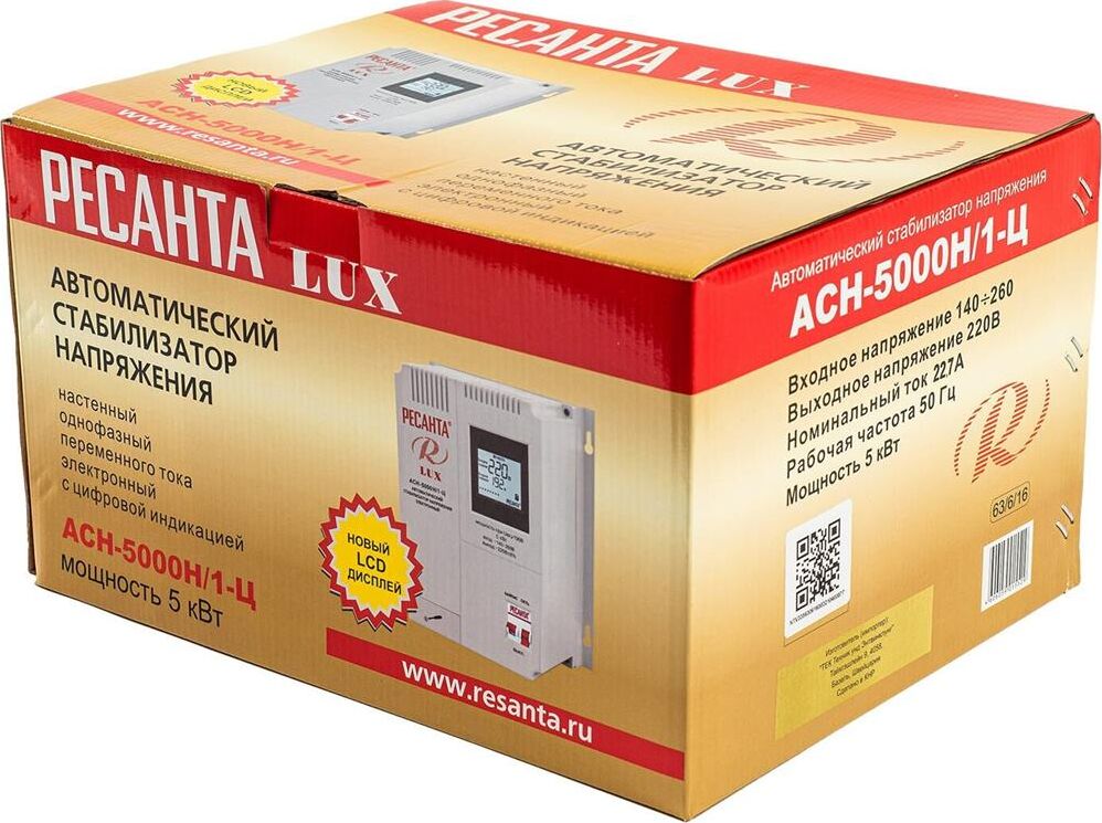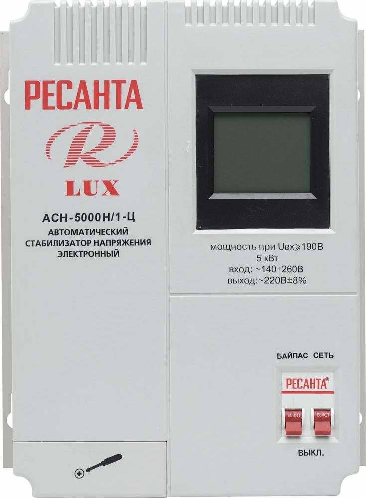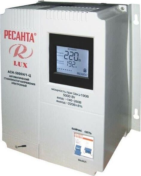 Номинальная мощность 5 000Вт, Тип двигателя Релейный, производство Китай, Серия АСН, Тип напряжения Однофазное (220 В), Размещение Настенноее, Скорость стабилизации 35В/с, Охлаждение Естественное, Класс защиты IP20, Влажность воздуха 80%, КПД 97%, Точность стабилизации 8%, Выходное напряжение 202-238В, Рабочая температура 5-40°C, Частота 50Гц, Защита от короткого замыкания, от перегрева, от повышенного напряжения, от помех