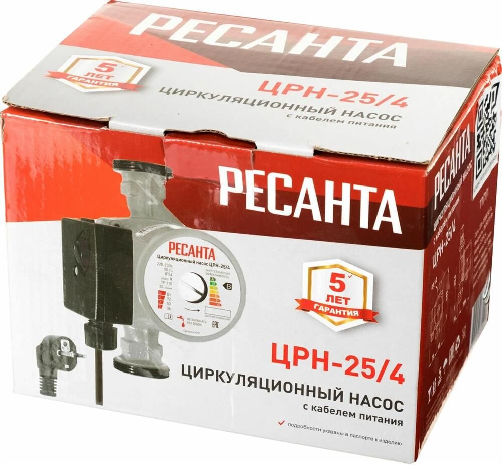 Циркуляционный насос РЕСАНТА ЦРН-25/4 - надежное и экономичное решение для обеспечения циркуляции воды в системах отопления, круговых трубопроводах горячего и холодного водоснабжения, центральных отопительных установках и системах перекачки промышленных вод. Компактные размеры и удобство использования в центральных отопительных установках делают этот насос отличным выбором. Он оснащен всасывающей и нагнетающей функциями, а вода перекачивается при помощи вращения рабочего колеса электродвигателем насоса.