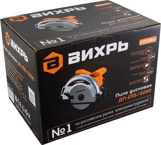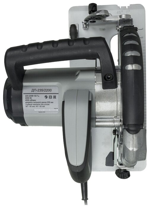 Мощность - 2200Вт. Макс. обороты - 5500об/мин. Наружный диаметр - 235мм. Посадочный диаметр - 30мм. Макс. глубина пропила - 85мм. Возможность использования с направляющей шиной, возможность работы по металлу.