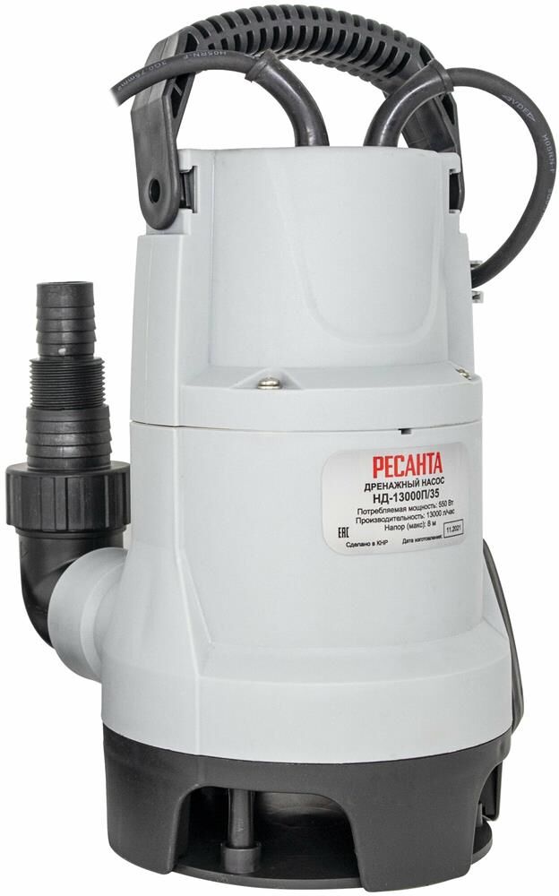 550 Вт, макс. напор – 8 м, 13000 л/час, для грязной воды, диаметр пропускаемых частиц – 35 мм, 1.5“