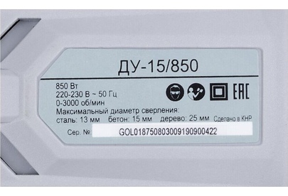 Номинальная мощность, Вт – 850. Частота вращения, об/мин – 0-3000. Тип патрона – ключевой.