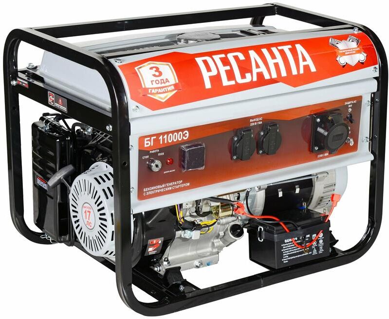 Электростанция бензиновая РЕСАНТА БГ11000Э предназначена для автономного электроснабжения. В качестве первичного двигателя используется четырёхтактный карбюраторный двигатель, топливом для которого является неэтилированный бензин.Электрогенератор предназначен для получения электроэнергии в тех местах, где отсутствует магистральное электроснабжение. Это касается, как частных домов, где генераторы могут использоваться в качестве резервного источника питания, так и различных участков работ, где нужно