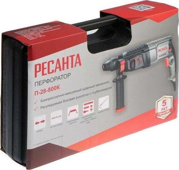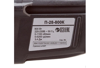 Номинальная мощность, Вт – 800. Частота вращения, об/мин – 0-1100. Сила удара, Дж – 3,4. Система зажима – SDS-plus.