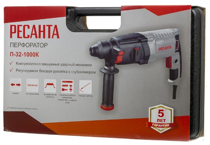 Номинальная мощность, Вт – 1000. Частота вращения, об/мин – 0-1100. Сила удара, Дж – 5,2. Система зажима – SDS-plus.
