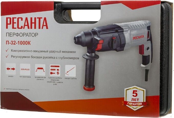 Номинальная мощность, Вт – 1000. Частота вращения, об/мин – 0-1100. Сила удара, Дж – 5,2. Система зажима – SDS-plus.