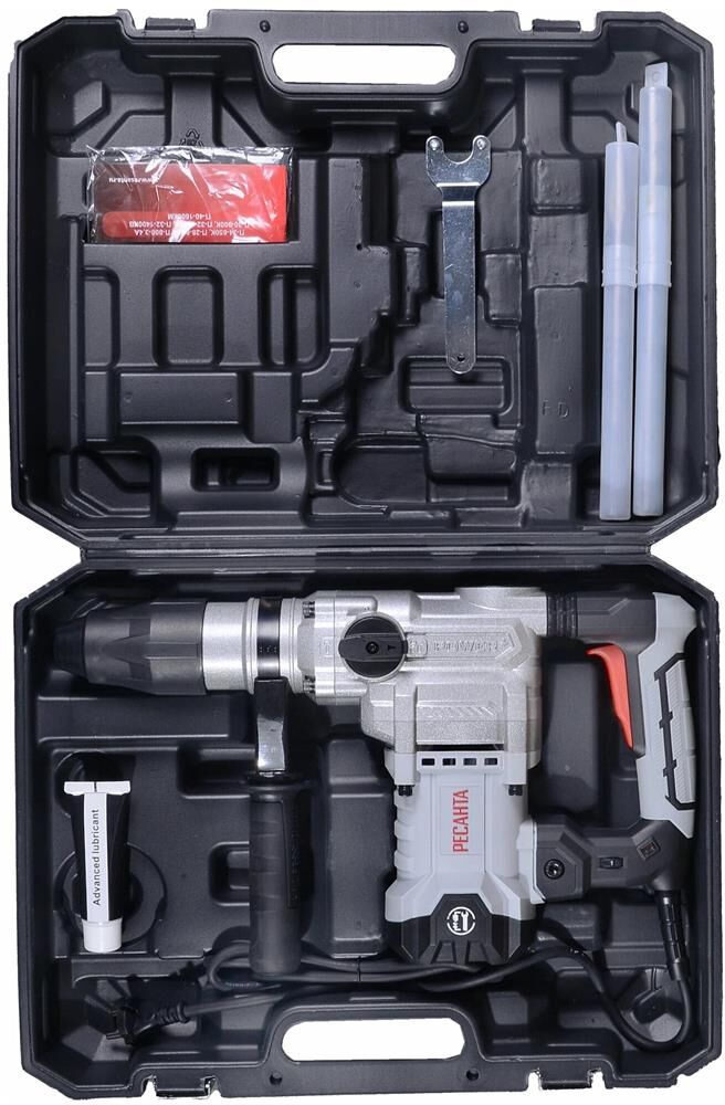 Перфоратор П-40-1600КМ SDS-Max Ресанта. Перфоратор - электроинструмент, аналогичный дрели, но с наличием не механического, а пневматического ударного механизма. Именно поэтому перфоратор используют для сложных работ по твёрдым материалам - бетону, кирпичу. Агрегат используется для сверления и пробивания отверстий в прочных материалах без приложения особых физических усилий со стороны оператора.