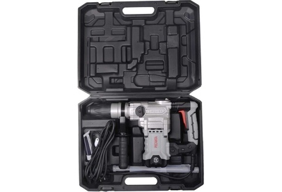 Перфоратор Ресанта П-42-2000 КМ SDS-Max служит для ударного сверления бетонных, каменных, кирпичных поверхностей. Перфоратор оснащён электродвигателем мощностью 2 кВт с максимальной частотой вращения 600 об/мин и количеством ударов – 3750 уд/мин с энергией 13Дж. Максимальный диаметр сверления в бетоне составляет 42 мм – отличный показатель для инструмента бытового назначения.