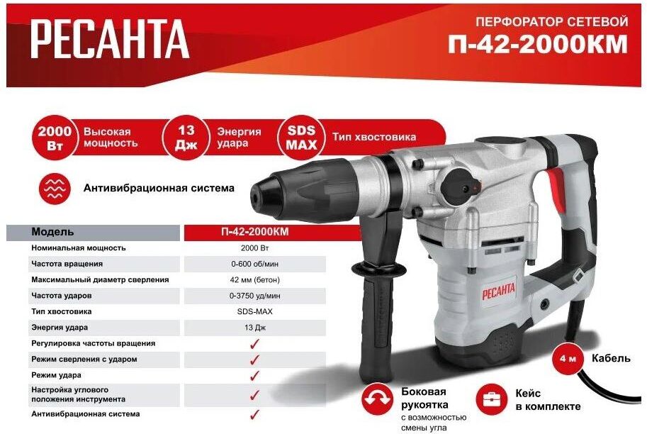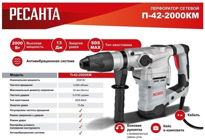 РЕСАНТА Перфоратор П-42-2000КМ SDS-Max