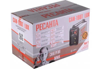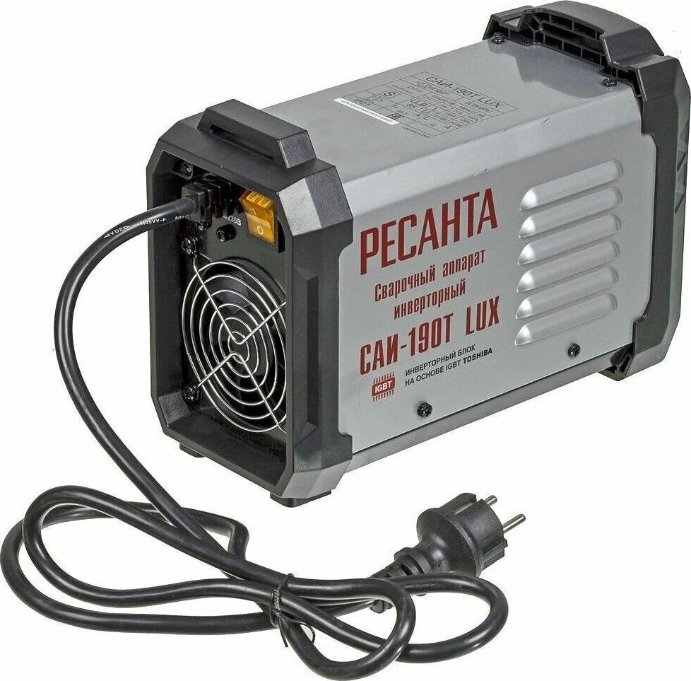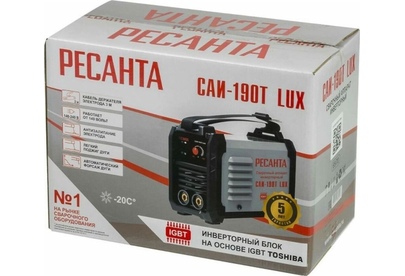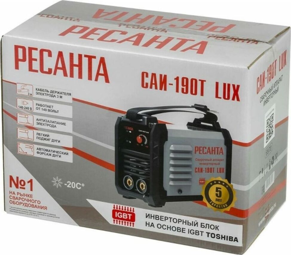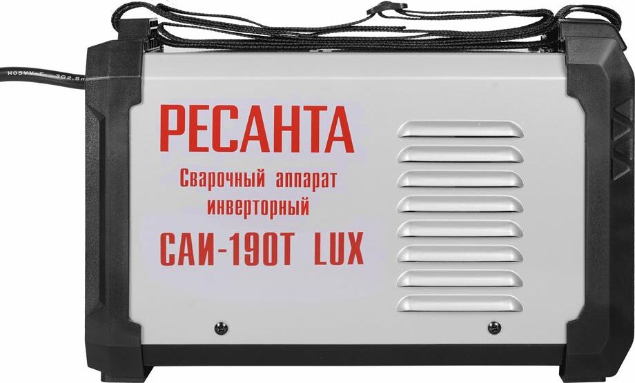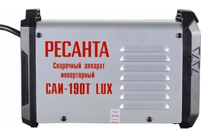 Сварочный аппарат РЕСАНТА САИ-190T LUX. Диапазон сварочного тока, А – 10-190; Входное напряжение, В – 140—260; Мощность, Вт – 7200; Максимальный диаметр электрода, мм - 6;