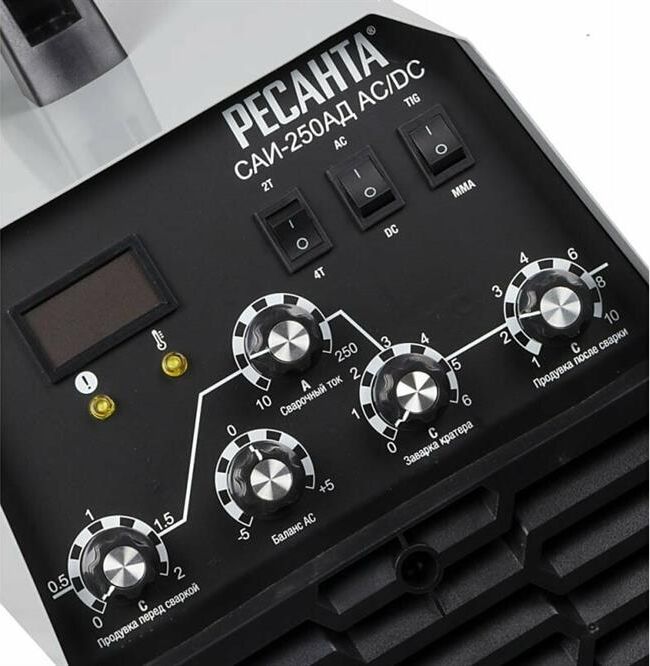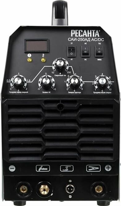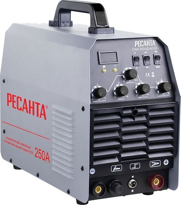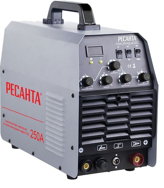 Сварочный аппарат РЕСАНТА САИ-250АД AC/DC. Диапазон сварочного тока, А – 15-250; Входное напряжение, В – 140-260; Мощность, Вт - 10000;