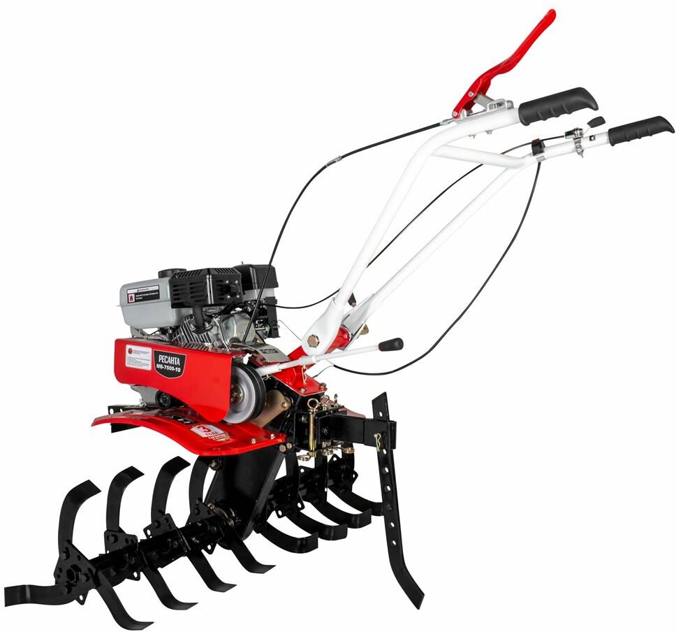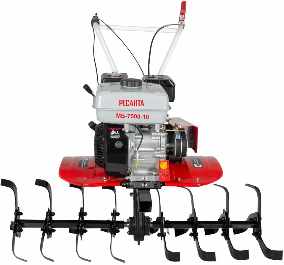 МБ-7500P-10 Ресанта - сельскохозяйственная машина, которая подойдет для механизации большого списка работ на приусадебном участке, в саду или небольшом фермерском хозяйстве. Мощности достаточно для обработки средних и больших территорий. Модель отличается высокой маневренностью, позволяет комфортно работать в узких междурядьях. С помощью разборной фрезы можно регулировать ширину обработки почвы от 45 см до 1 м. Мотоблок подходит для вспахивания почвы, в том числе целины. Закаленные фрезы диаметром 30 см.