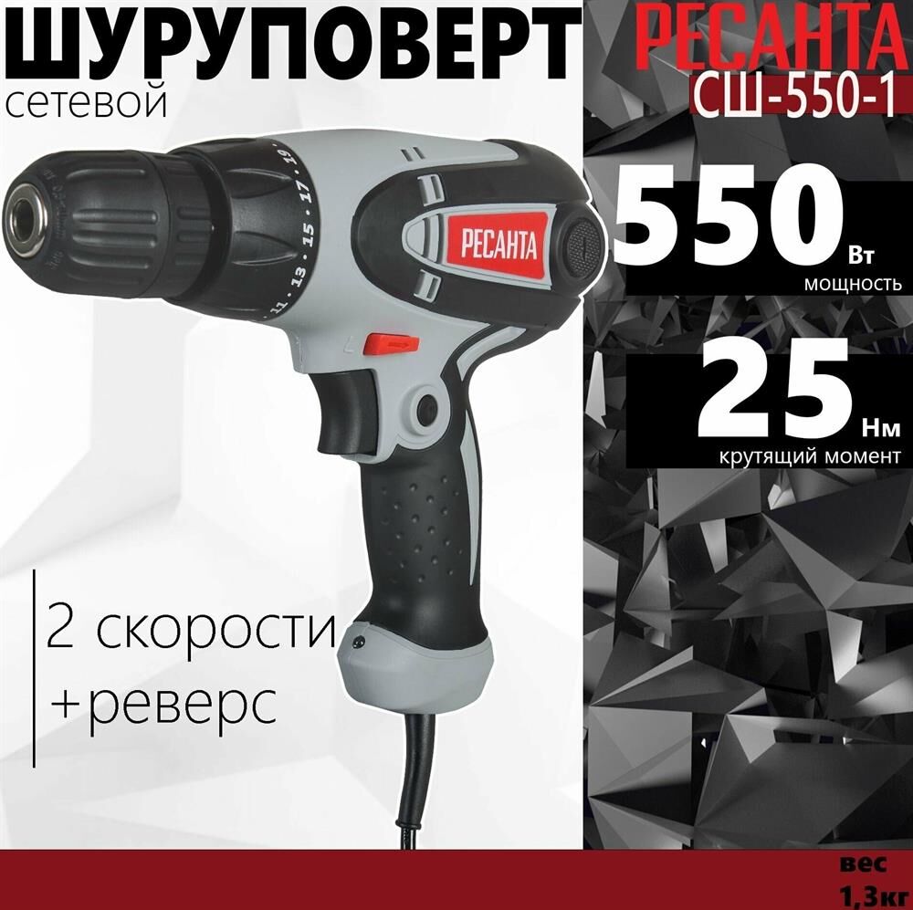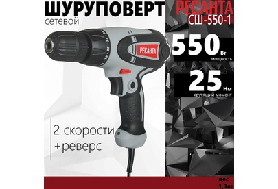 Мощность - 550Вт. Макс. обороты - 800об/мин. Тип патрона - БЗП. Диаметр патрона - 10мм. Макс. крутящий момент - 25Нм. Макс. диаметр сверления металл/дерево - 10/25мм. Электронная регулировка числа оборотов.