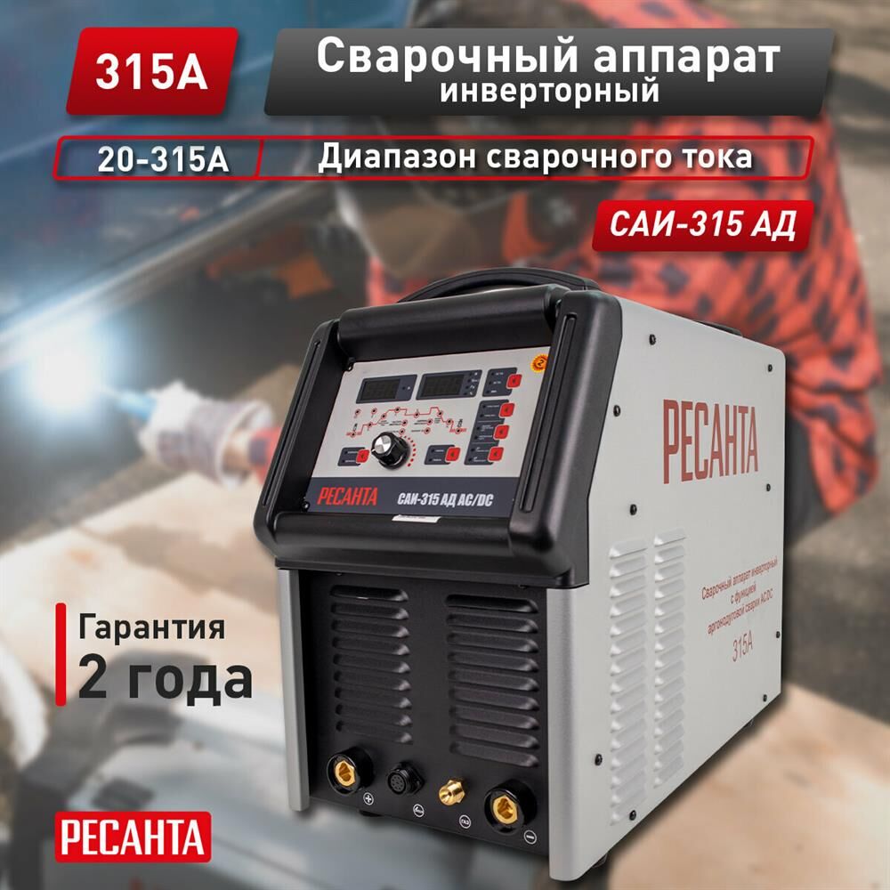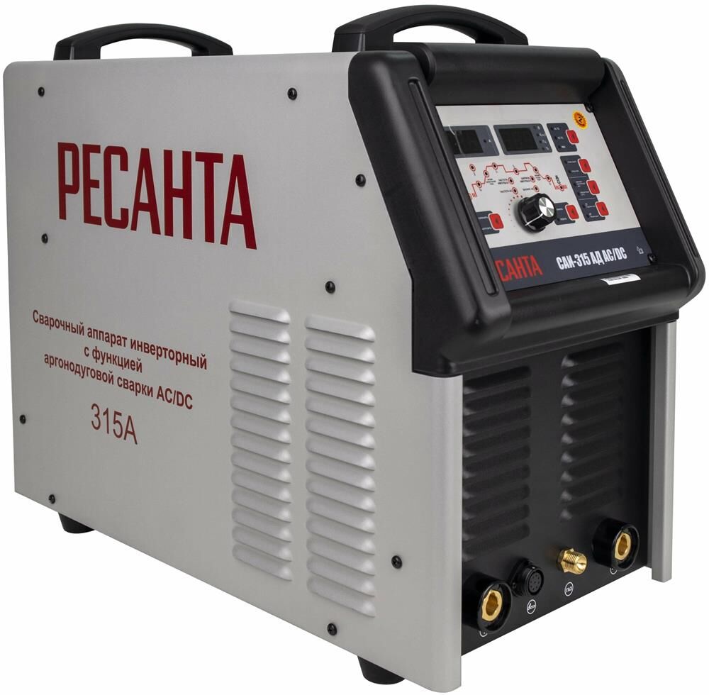 РЕСАНТА САИ-315 АД AC/DC – современная инверторная аргонодуговая установка, позволяющая работать как на постоянном (сварка черных и нержавеющих сталей, меди, титана и пр.), так и на переменном токе (сплавы алюминия, магния, медные сплавы больших толщин и пр.), где требуется удаление окислов со свариваемой поверхности). Использование и развитие инверторной технологии в сварке существенно уменьшает массо-габаритные характеристики.
