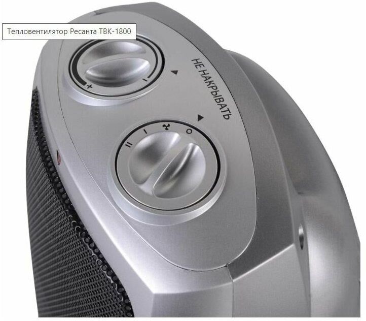 Тепловентилятор Ресанта ТВК-1800 используется для вентиляции и обогрева помещения. Есть два режима обогрева: на пониженной и высокой мощности. Прибор оснащен керамическим нагревательным элементом. В каждом устройстве подобного типа имеется обыкновенный вентилятор, который перемещает холодный воздух, подгоняя его к нагревательному элементу. Подогретые воздушные массы устремляются в комнату, благодаря этому помещение эффективно нагревается.
