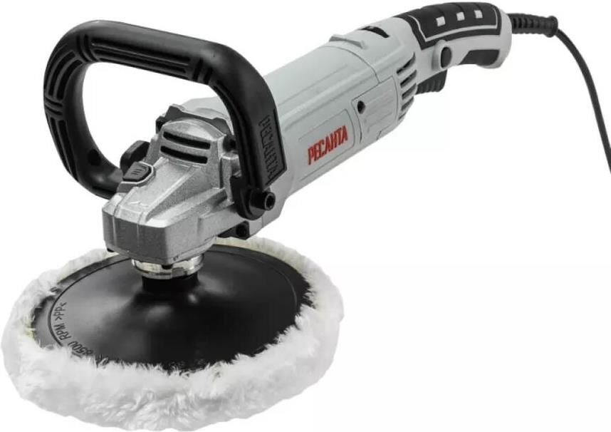 Мощность: 1500. Регулировка частоты оборотов: есть. Диаметр шлифовального круга: 180. Резьба шпинделя: M14. Система гашения вибрации: нет. Блокировка шпинделя: есть. Плавный пуск: есть. Защита от непреднамеренного включения: есть. Поворот рабочей головки: нет. Вес товара: 2.89. Особенности: Гарантийный срок составляет 24 мес. со дня продажи. Расширенная гарантия 60 мес. предоставляется только при условии, регистрации в течении 1 мес. с покупки на сайте www.resanta.ru. Комплект поставки: Полировальная машина, дополнительная рукоятка, тарелка полировальная, насадка полировальная меховая, крепеж для дополнительной рукоятки - 2 шт., ключ шестигранный, паспорт, упаковка.. Суперфланец: нет. Тип электропитания: от электросети. Габариты упаковки (ед) ДхШхВ: 0.43x0.13x0.161. Вес упаковки (ед): 2.83. Тип электрического двигателя: щеточный. Страна производства: Китай. Кейс в комплекте: нет. Бесключевая замена оснастки: нет. Датчик падения: нет. Защита двигателя от перегрева: есть. Класс инструмента: бытовой. Общее колич