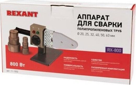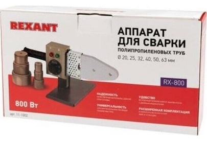 Аппарат для раструбной сварки Rexant® RX-800 применяется для установки и обслуживания коммуникаций из полипропиленовых труб во всех сферах: бытовой, производственной, ремонтной. Мощность 800 Вт делает возможным предельно быстрый нагрев до рабочей температуры. В зависимости от характеристик материала она может колебаться от 50 до 300 °C. Сварочный аппарат поставляется в металлическом чемоданчике, что упрощает его транспортировку и хранение, так как не занимает много места. Комплектация включает 6 насадок, покрытых тефлоном, диаметром от 20 до 63 мм. Модель оснащена индикацией включения и изменения режима. Регулятор рабочей температуры: термостат Диапозон рабочей температуры: 0-300 градусов Мощность: 800 Вт В комплекте 6 насадок, диаметром: 20, 25, 32, 40, 50, 63 мм. Тип сварочного сопла: нормальный Покрытие греющих элементов: тефлоновое