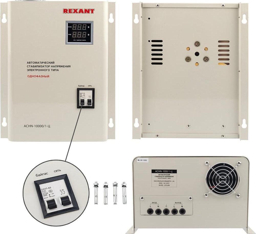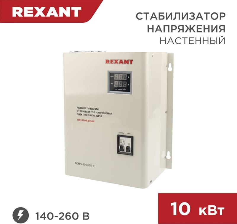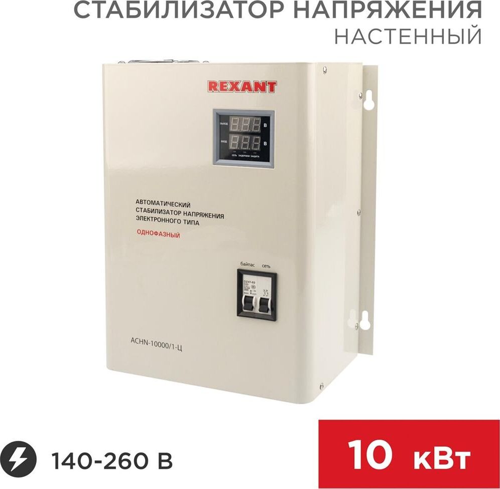 Однофазный стабилизатор переменного напряжения релейного типа марки REXANT используется для предотвращения поломки бытовых и промышленных электроприборов вследствие перепадов напряжения в сети. Устройство стабилизирует входное напряжение в случае отклонения от нормы, что предотвращает внезапную поломку оборудования. Превышение предельно возможного значения напряжения приводит к аварийному отключению нагрузки. Имеет широкий рабочий диапазон входного напряжения и высокую скорость реакции на перепады. Оснащен варистором, который сглаживает импульсные помехи. Предусмотрена высокая точность стабилизации напряжения.