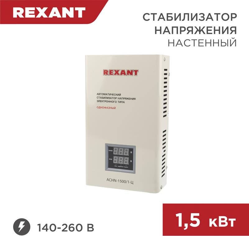 Однофазный стабилизатор переменного напряжения релейного типа марки REXANT используется для предотвращения поломки бытовых и промышленных электроприборов вследствие перепадов напряжения в сети. Устройство стабилизирует входное напряжение в случае отклонения от нормы, что предотвращает внезапную поломку оборудования. Превышение предельно возможного значения напряжения приводит к аварийному отключению нагрузки. Имеет широкий рабочий диапазон входного напряжения и высокую скорость реакции на перепады. Оснащен варистором, который сглаживает импульсные помехи. Предусмотрена высокая точность стабилизации напряжения. Опция байпас позволяет переключать электропитание нагрузки на входную сеть в обход электронной схемы устройства в период, когда его использование нецелесообразно. Например, при низкой нагрузке на сеть.