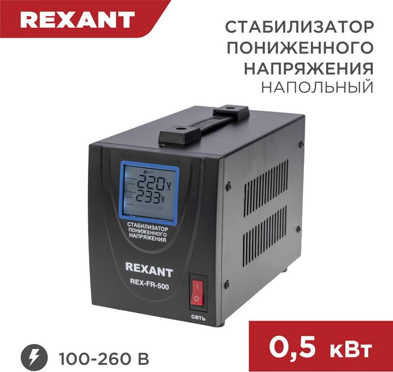 Однофазный стабилизатор переменного напряжения релейного типа марки REXANT предназначены для поддержания стабильного напряжения сети и питания электрооборудования и бытовых приборов. При отклонении входного напряжения от нормы устройство стабилизирует его, благодаря чему подключенное к нему оборудование можно использовать без опасности вероятных поломок. Оснащен индикацией основных режимов работы, а также уровней напряжения на входе и выходе. Номинальная величина выходного напряжения составляет 220 В ± 10%. Наличие варистора позволяет сглаживать импульсные помехи. Устройство незаменимо в случае необходимости защитить оборудование от поломок вследствие перепадов напряжения в сети.