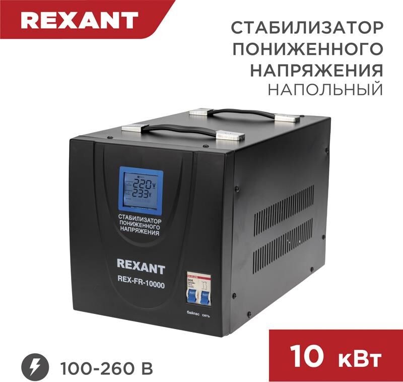 Однофазный стабилизатор переменного напряжения релейного типа марки REXANT используется для защиты различных бытовых и промышленных электроприборов от перепадов напряжения в сети и токов короткого замыкания. В случае отклонения входного напряжения от нормы, устройство стабилизирует его и защищает оборудование от непредвиденных поломок. При превышении предельных значений срабатывает аварийное отключение нагрузки. Устройство имеет широкий рабочий диапазон входного напряжения и поддерживает нужное значение с высокой степенью точности. Оснащен защитой от перегрева и токов короткого замыкания. Актуален для подключения к бытовым приборам, которые работают от сети непрерывно. Текущие показатели отображаются на дисплее. Устройство работает бесшумно, выключается с помощью клавиши.