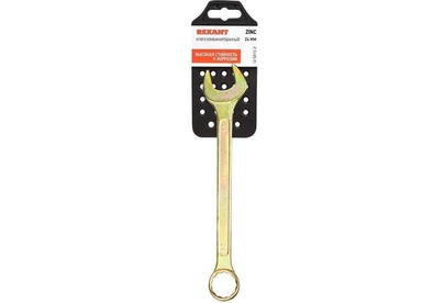 Комбинированный гаечный ключ REXANT представляет собой инструмент с рожковым профилем с одной стороны и накидным – с другой. Предназначен для монтажа и демонтажа резьбовых соединений: болтов, гаек, муфт и т. д. Применяется в быту, слесарных мастерских и на производстве. Инструмент обладает высокой стойкостью к коррозии благодаря желтому оцинкованному покрытию. Качественный сплав выдерживает значительное давление. Комбинированный ключ имеет долгий срок службы, прост в обращении и обеспечивает доступ к любому крепежу.