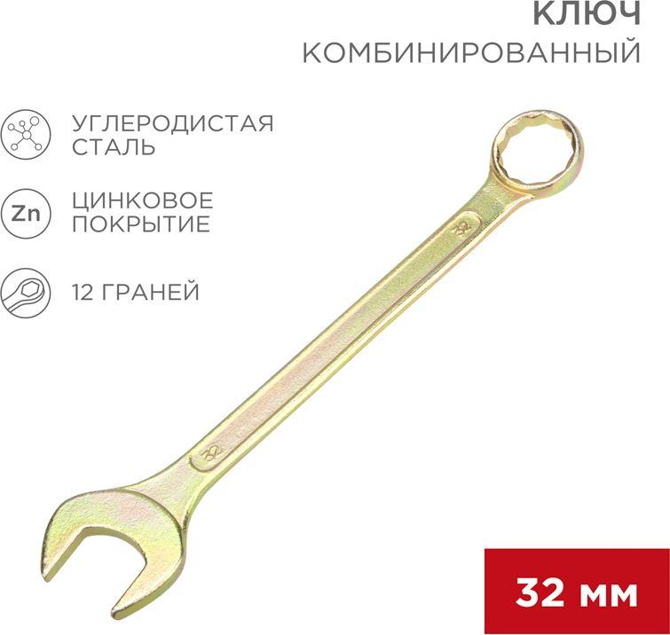 REXANT (12-5818-2) Ключ комбинированный 32мм, желтый цинк