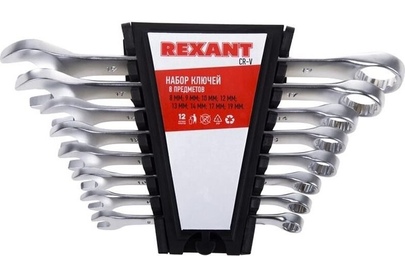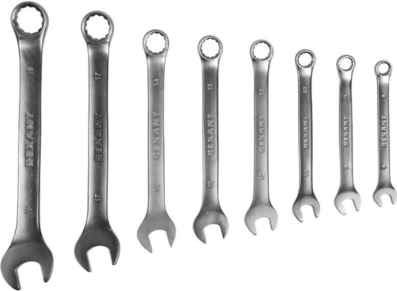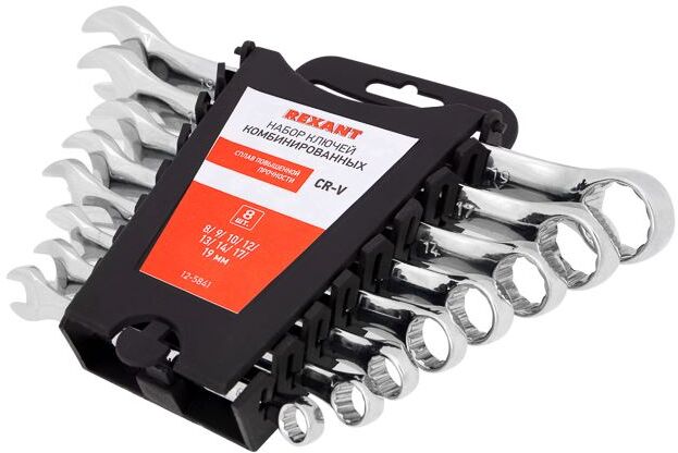 REXANT (12-5841) Набор ключей комбинированных (8-19мм), 8 шт, CrV, зеркальное хромирование