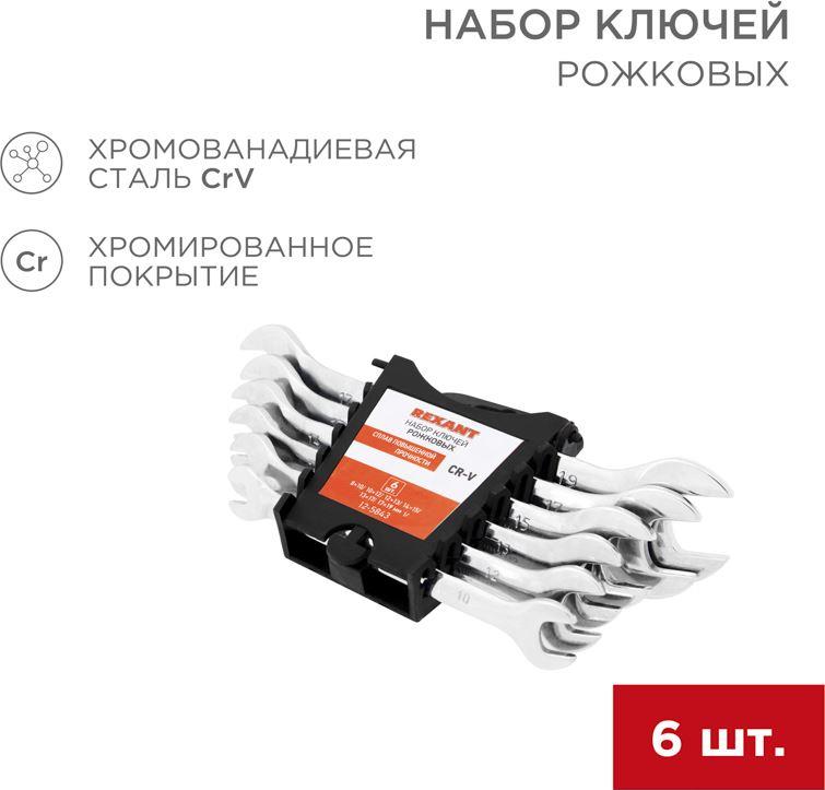 REXANT (12-5843) Набор ключей рожковых (8-19мм), 6 шт, CrV, зеркальное хромирование
