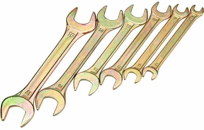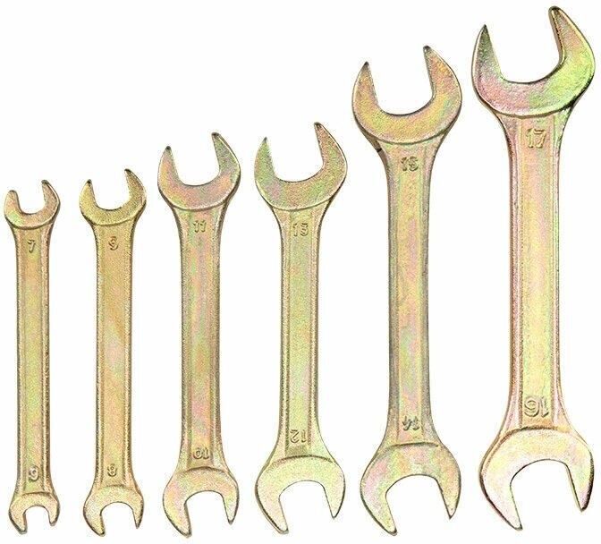 REXANT (12-5843-2) Набор ключей рожковых (6х7-16х17мм), 6 шт, желтый цинк