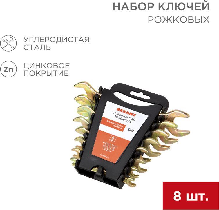 REXANT (12-5844-2) Набор ключей рожковых (6х7-20х22мм), 8 шт, желтый цинк