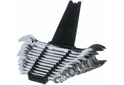 Набор рожковых гаечных ключей REXANT применяется для монтажа и демонтажа резьбовых соединений: болтов, гаек, муфт и т. д. Широко используется в быту, слесарных мастерских и на производстве. Хромованадиевый сплав, из которого изготовлены ключи, обладает такими свойствами, как прочность, жесткость, устойчивость к износу. Во время прокаливания он менее подвержен деформациям и потере первоначальной формы, чем другие типы инструментальной стали. Хромовое покрытие защищает рожковые ключи от образования ржавчины, продлевает их срок службы. Инструменты просты в обращении и обеспечивают доступ к любому крепежу. Для удобства транспортировки и хранения ключи поставляются в пластиковом футляре. Размеры: 6х7, 8х10, 10х12, 12х13, 14х15, 13х17, 17х19, 19х22, 22х24, 25х27, 27х30, 30х32 мм. Количество граней у накидного ключа: 12.