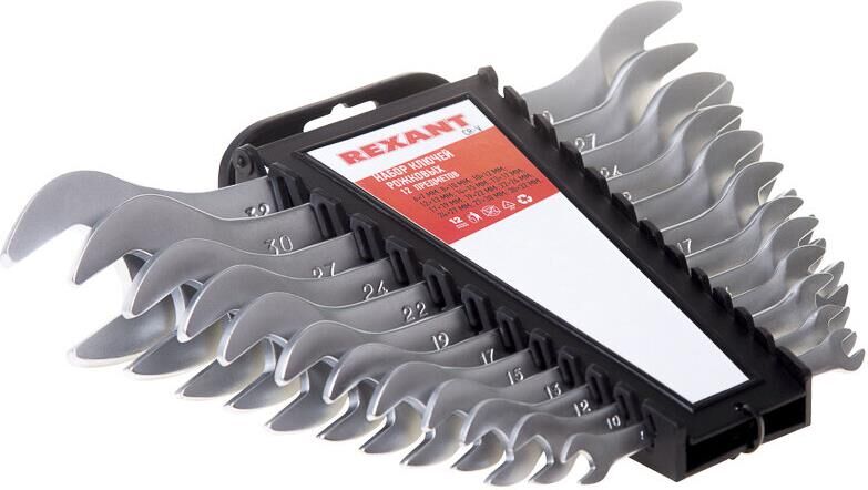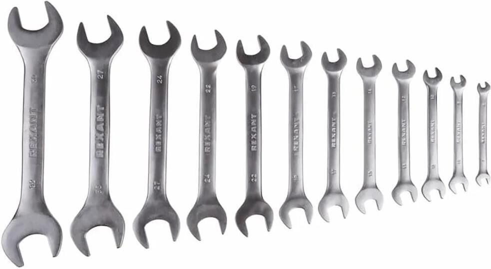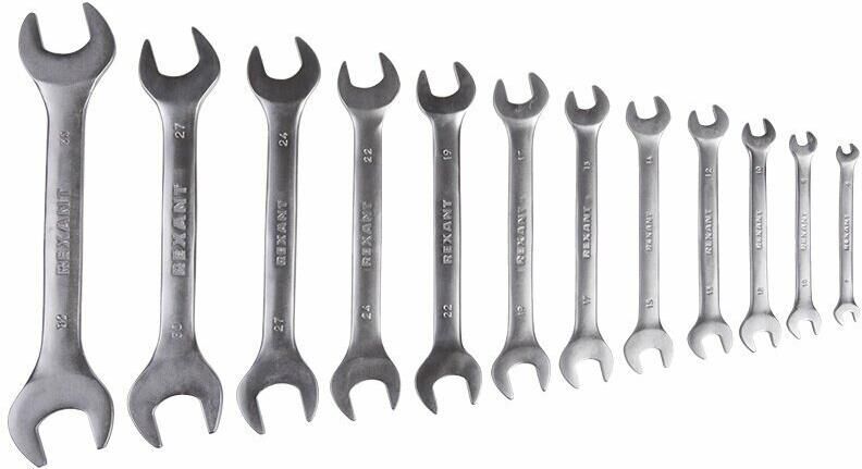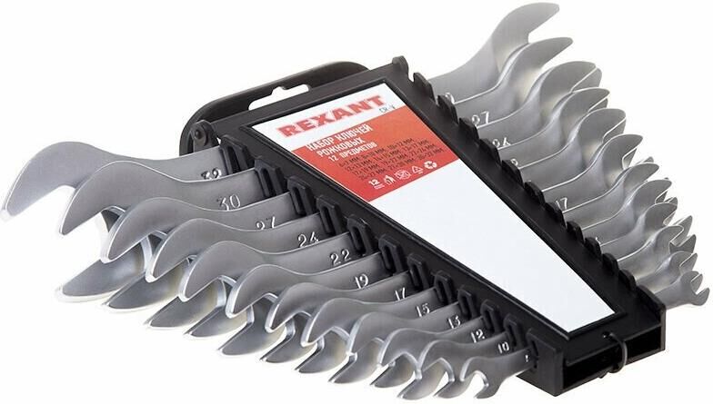 REXANT (12-5845) Набор ключей рожковых 6-32мм 12 предметов CrV, зеркальное хромирование
