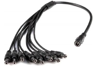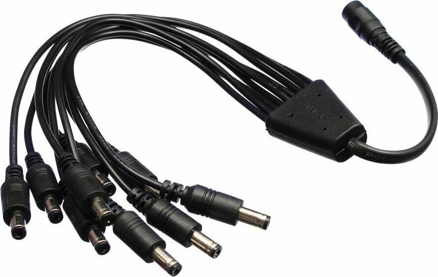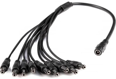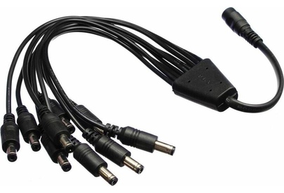 Идеально подойдет, когда нужно подключить к одному разъему питания 2,1*5,5 несколько камер видеонаблюдения. Просто подключите адаптер к вашему разъему питания, а к выходу адаптера вы можете подключить от 1 до 9 камер. длинна провода адаптера 46 см.