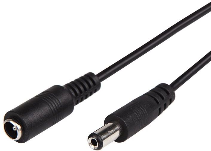 Удлинитель кабеля питания 1,5 метра. Используется для удлинения кабеля питания видеокамер, светодиодных лент и т.п. С одной стороны шнура находится штекер питания, с другой стороны гнездо питания. Основные характеристики: Тип разъема: гнездо 2,1*5,5 мм / штекер 2,1*5,5 мм; Длина: 1,5 м; Цвет: черный.