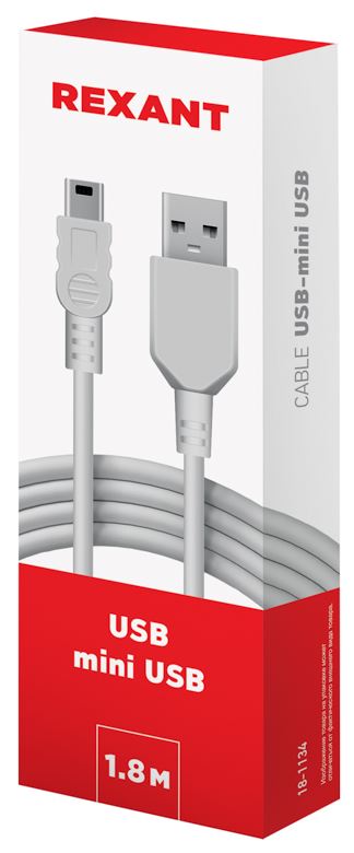 REXANT (18-1134) Кабель USB-mini USB/PVC/white/1,8m/REXANT