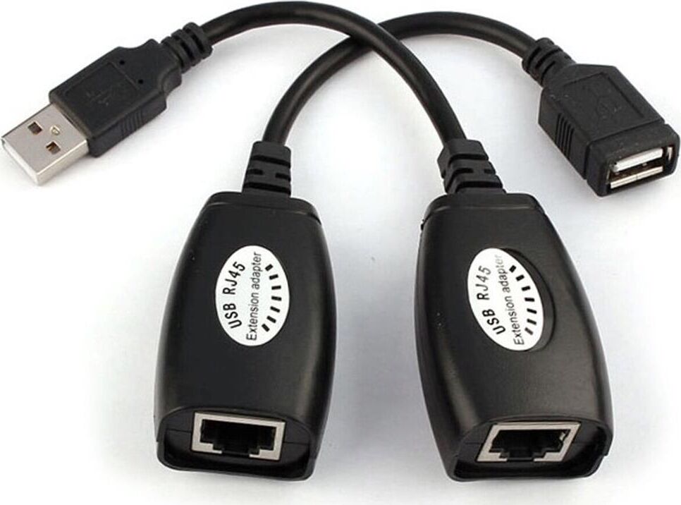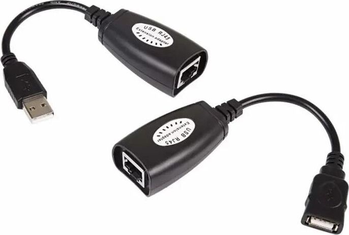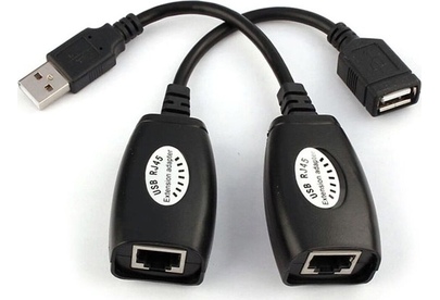 USB удлинитель по витой паре (8p8c) REXANT Интерфейс удлинителя: RJ-45 + USB 1.1 Описание активного USB удлинителя RJ-45: USB удлинитель по витой паре можно использовать со всеми устройствами USB 2.0 - 1.1 (3G модемы, принтеры, сканеры, флешки, интерактивные доски и интерактивные приставки, веб-камеры, клавиатуры, мыши и т.п.) Активный USB удлинитель представляет собой переходник USB-RJ45 (витая пара). Используемая технология увеличивает напряжение на входе и стабилизирует его на выходе, что позволяет использовать его без подключения дополнительного питания. Питание от порта USB. Тип разъемов кабеля: USB шт./RJ45 гн. , RJ45 гн./USB гн. Тип оболочки: пластик Передача информации до 45 метров.