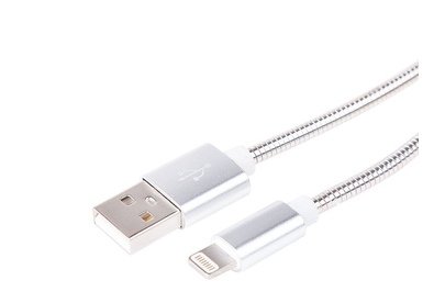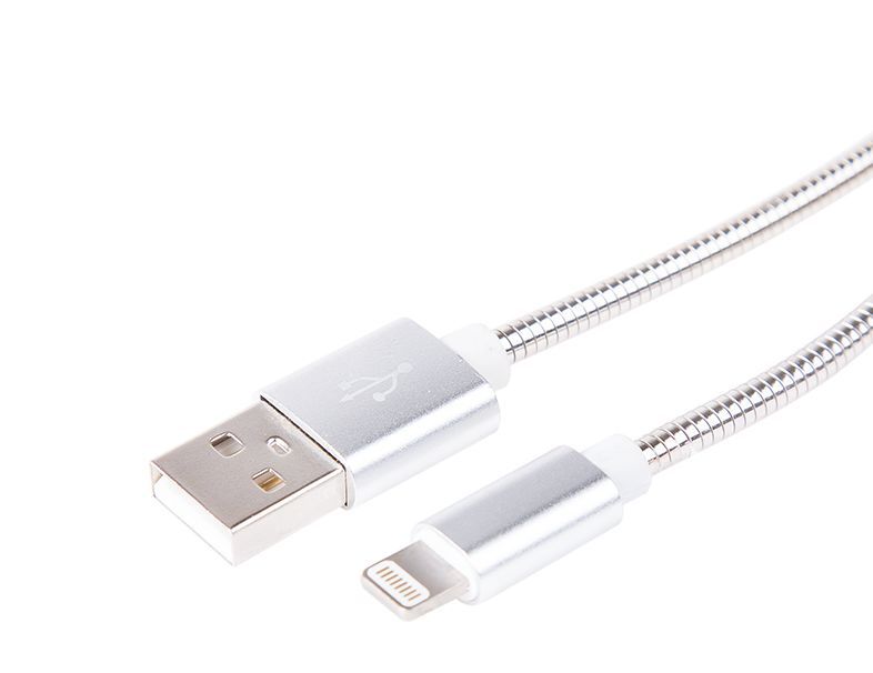 USB кабель в металлической оплетке пред для зарядки и синхронизации с ПК или ноутбуком, устройств компании Apple, оборудованных разъемом 8 pin. С одной стороны кабель подключается к гаджету, а с другой — к компьютеру или зарядному устройству. Обеспечивает быструю зарядку и передачу данных.