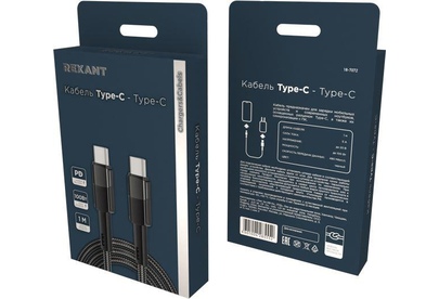 REXANT (18-7072) Type-C ? Type-C, 5A, 100Вт, 1м, в черной нейлоновой оплетке