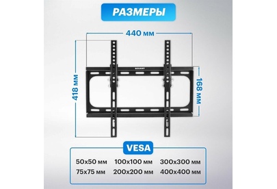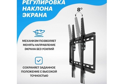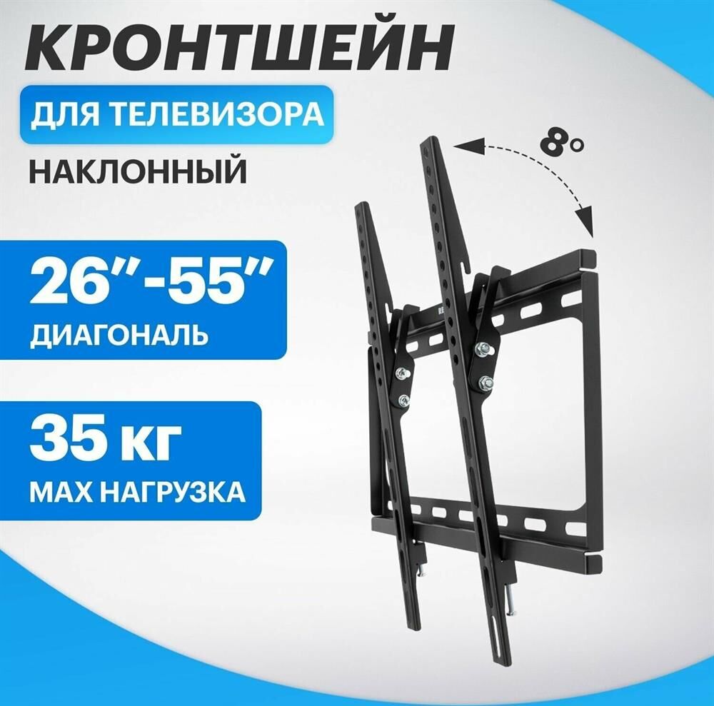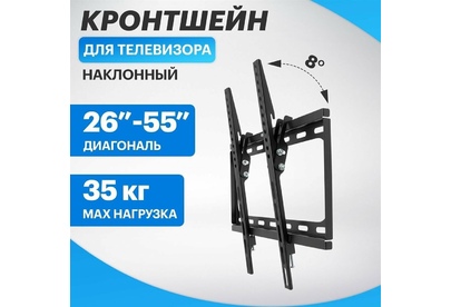 Кронштейн для телевизора. Тип: наклонный Цвет: черный глянец Мин. диагональ: ТВ 26 Макс. диагональ: ТВ 55 Максимальный вес оборудования: 30 кг Установка: настенный Расстояние от стены до кронштейна: 26 мм Поддержка крепления VESA 50х50: да Поддержка крепления VESA 75х75: да Поддержка крепления VESA 100х100: да Поддержка крепления VESA 200х100: да Поддержка крепления VESA 200х200: да Поддержка крепления VESA 300х200: да Поддержка крепления VESA 400х200: да Поддержка крепления VESA 300х300: да Поддержка крепления VESA 400х400: да Угол наклона -0°/+10°