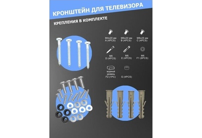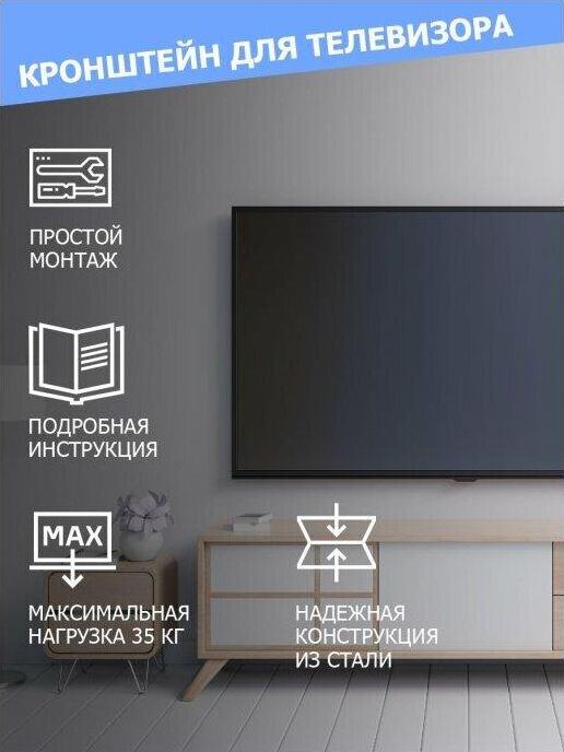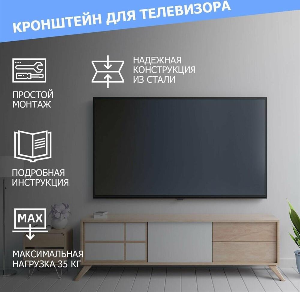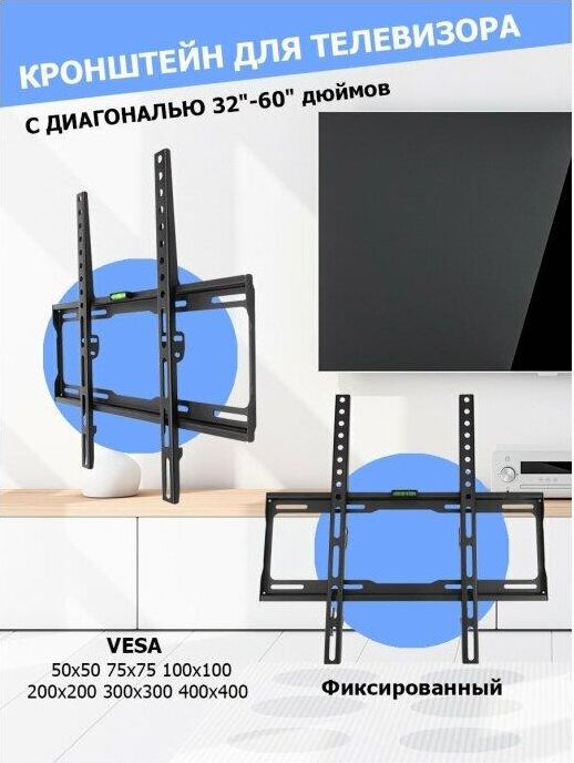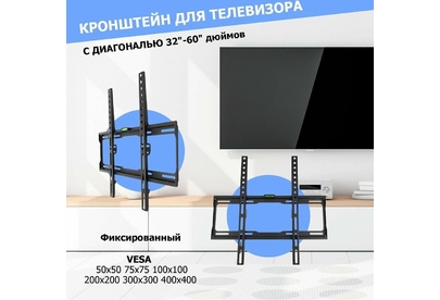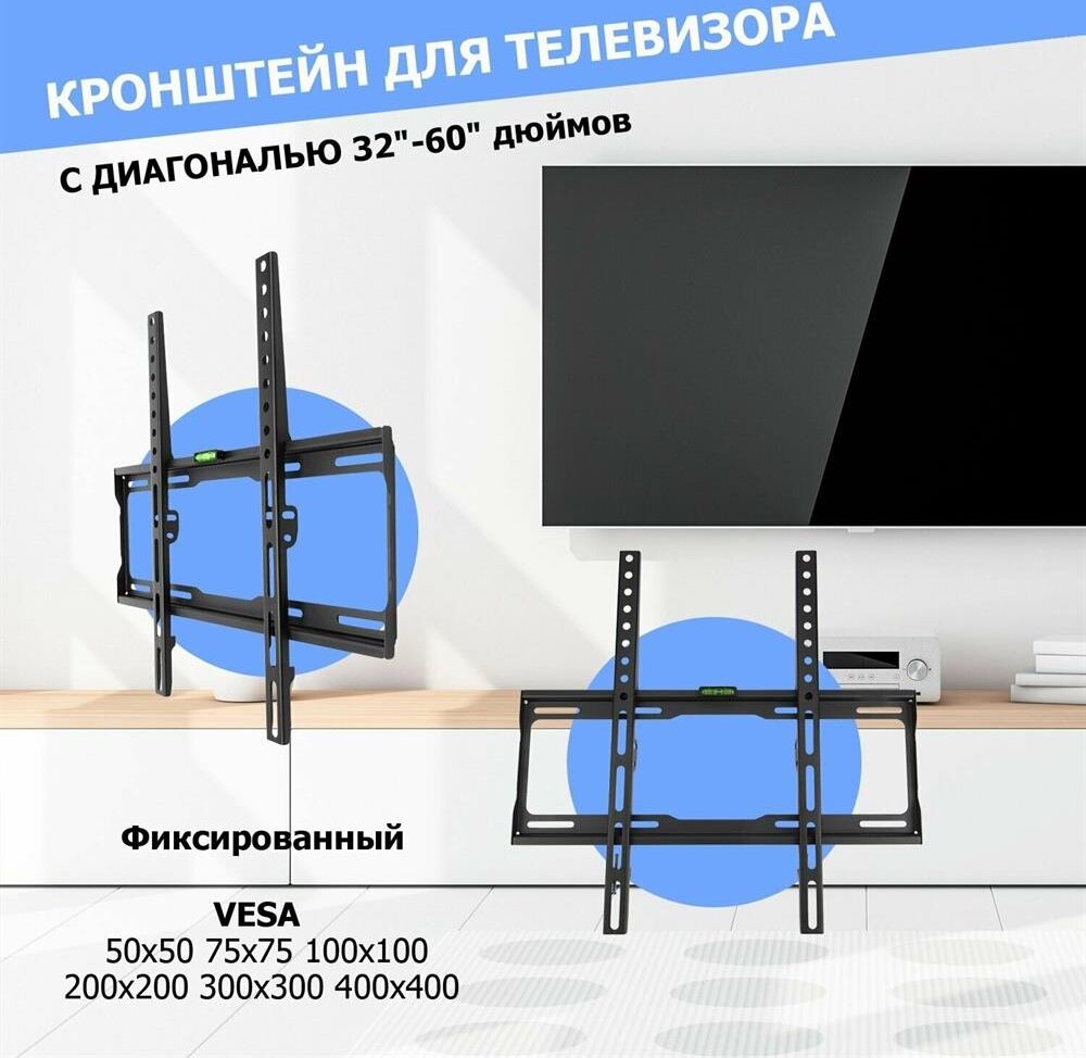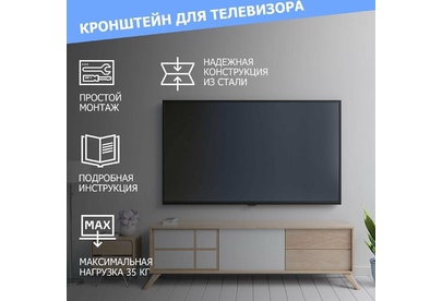 Кронштейн на стену для телевизора, диагональю: 30"-60 " дюймов, REXANT серия HOME Тип: фиксированный Назначение: для LED/LCD/PLASMA тел-в Цвет: черный Мин. диагональ: ТВ 32 дюймов Макс. диагональ: ТВ 60 дюймов Максимальный вес оборудования: 35 кг Тип монтажа: настенный Расстояние от стены до кронштейна: 23 мм Поддержка крепления стандарта VESA: 50x50/75х75 /100х100/200x200/300x300/400x400 Крепление: в комплекте.