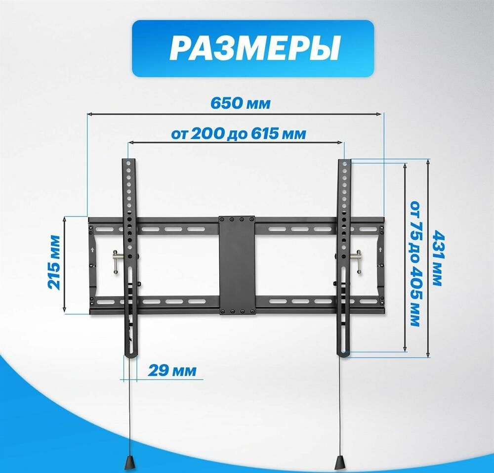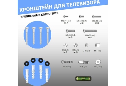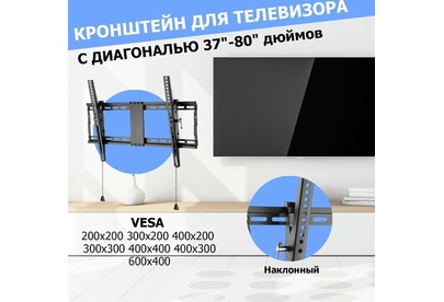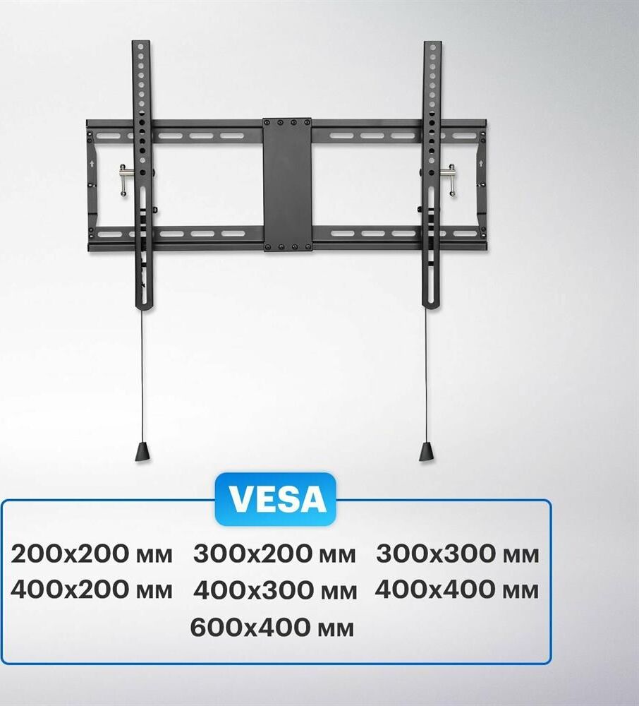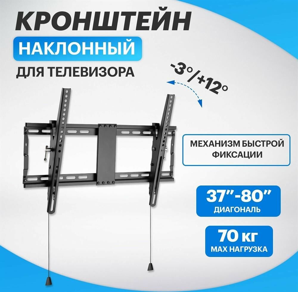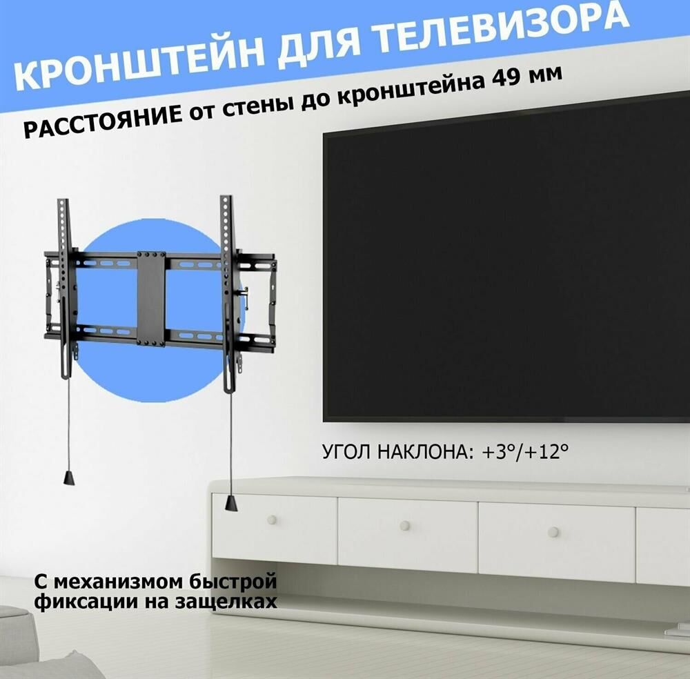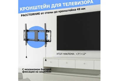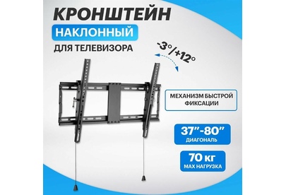 Тип: наклонный Назначение: для LED/LCD/PLASMA телевизоров и мониторов Цвет: черный Мин. диагональ: ТВ 37 дюйма Макс. диагональ: ТВ 80 дюймов Наклон: 3°-12° Максимальный вес оборудования: 70 кг Тип монтажа: настенный Расстояние от стены до кронштейна: 49 мм Поддержка крепления стандарта VESA: 200x200, 300x200, 300x300, 400x200, 400x300, 400x400, 600x400 Пузырьковый уровень: в комплекте Крепление: в комплекте С механизмом быстрой фиксации на защелках