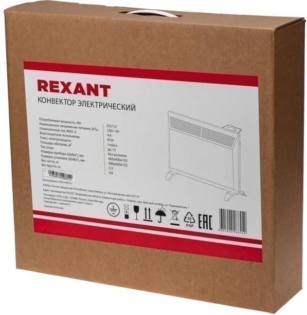 REXANT (60-0115) Конвектор электрический с механическим термостатом, 1кВт, Х-нагревательный элемент
