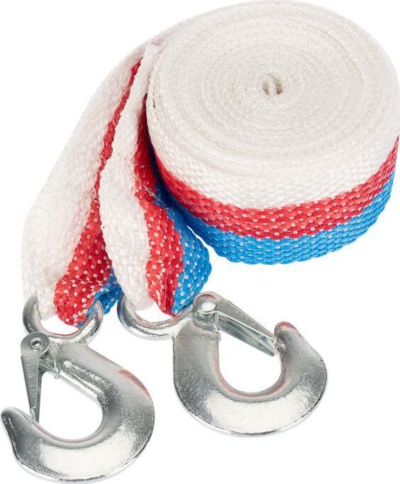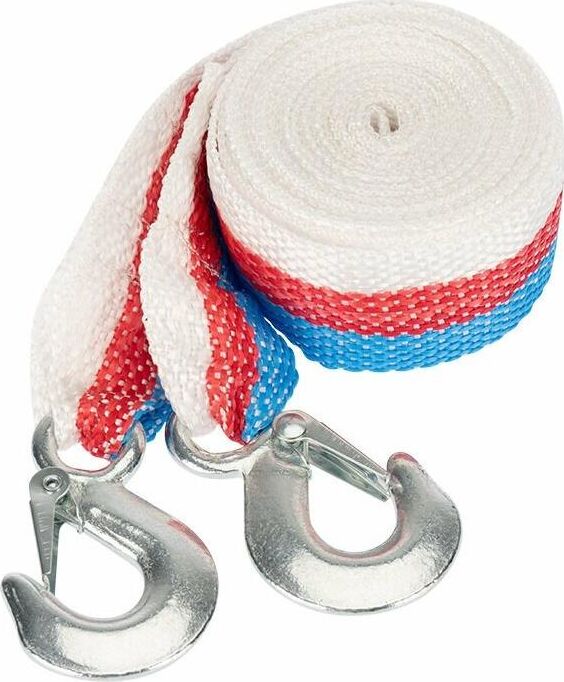 Буксировочный трос предназначен для надежного соединения двух автомобилей с целью безопасной транспортировки или буксировки одного автомобиля с помощью другого. Является незаменимым элементом в случае поломки автомобиля. Трос изготовлен из полипропилена, отличающегося стойкостью к низким температурам и резкому изменению влажности. На концах изделия расположены металлические крюки с пружинным фиксатором. Трос обладает грузоподъемностью до 3,5 тонн и при продолжительной эксплуатации не меняет свои линейные размеры. Длина изделия – 5 м, что обеспечивает достаточное расстояние между автомобилями, позволяет водителям сохранять безопасную дистанцию и маневрировать во время движения. Для удобства хранения поставляется в индивидуальной упаковке.