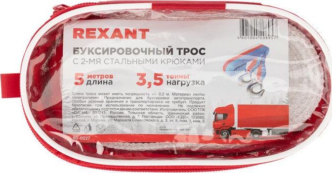 REXANT (80-0223) Трос буксировочный 3,5т, 5м, с двумя крюками