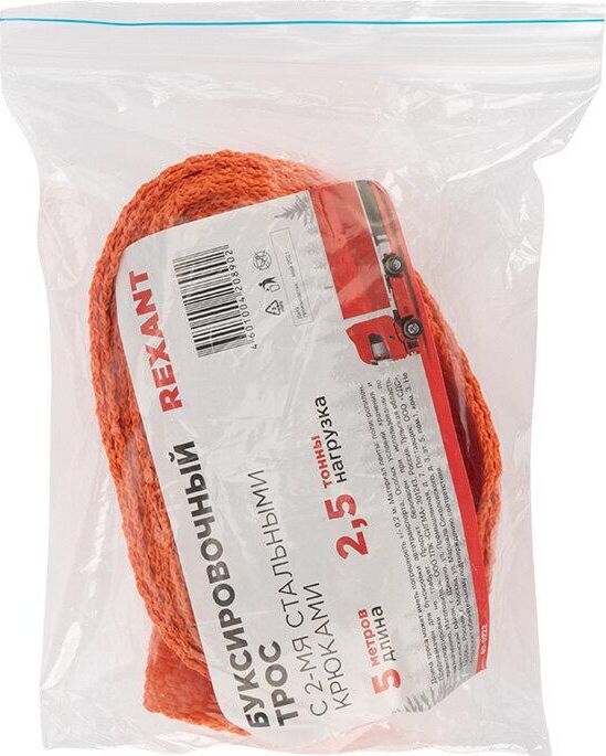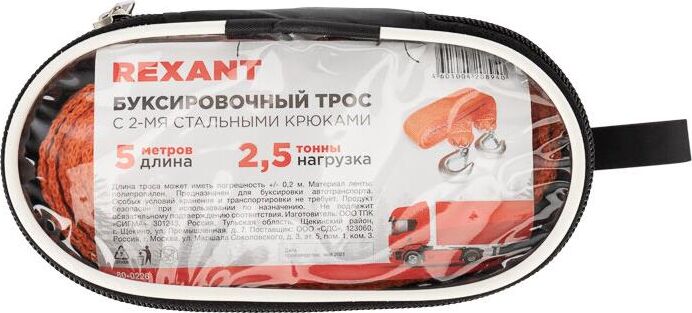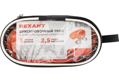 REXANT (80-0226) Трос буксировочный 2,5т, 5м, с двумя крюками, в чехле