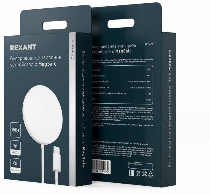 Беспроводное зарядное устройство REXANT предназначено для удобной и быстрой зарядки гаджетов. Позволяет быстро зарядить ваш смартфон или наушники, просто положив их на панель беспроводной зарядки. Изделие совместимо с iPhone, Apple Watch, Airpods. Максимальная допустимая мощность для зарядки составляет 15 Вт. Поддержка технологии Qi обеспечивает высокую эффективность и удобство в использовании, позволяя забыть о запутанных кабелях и зарядных разъемах. Благодаря поддержке стандарта Fast Charge процесс зарядки осуществляется значительно быстрее, в сравнении с обычными зарядными устройствами.