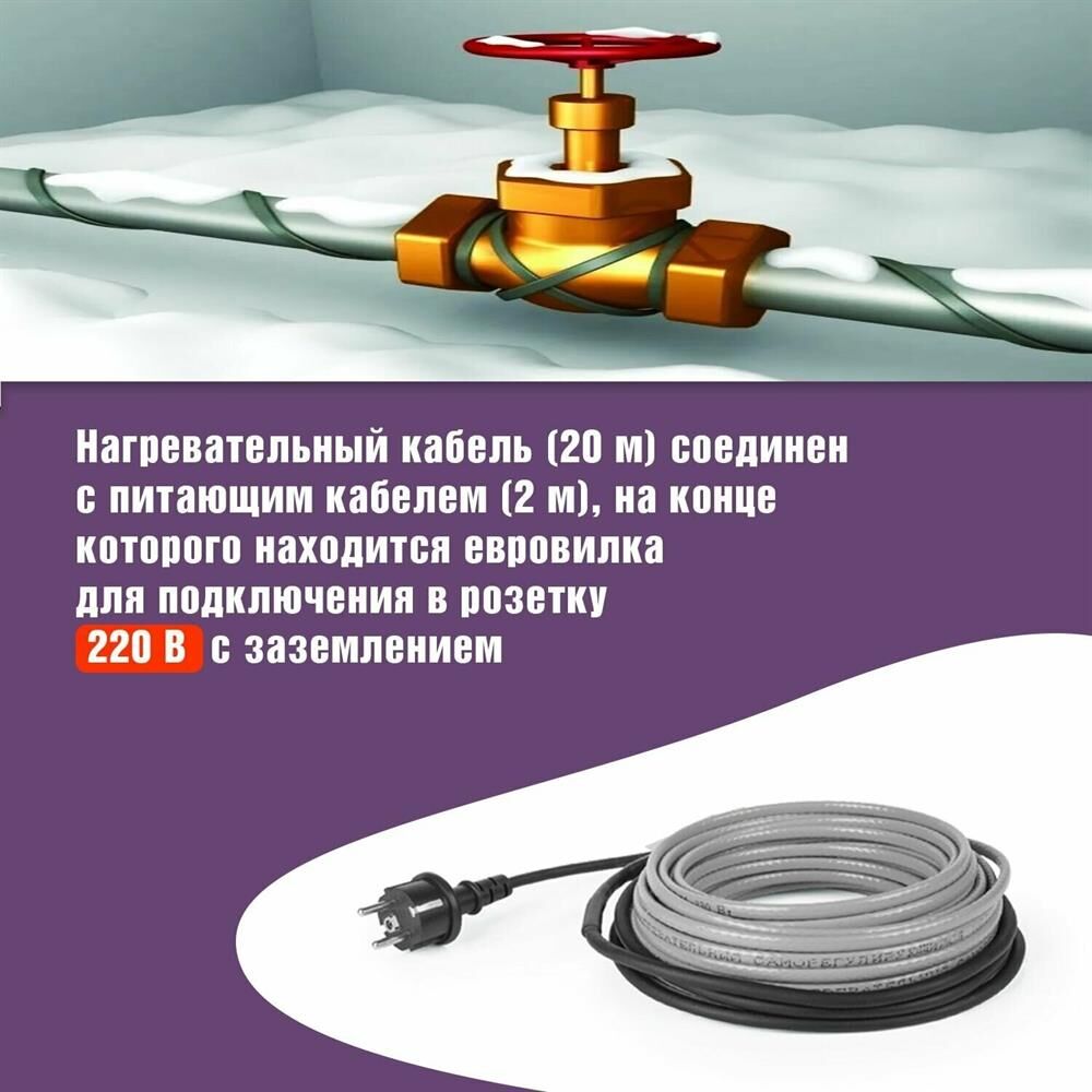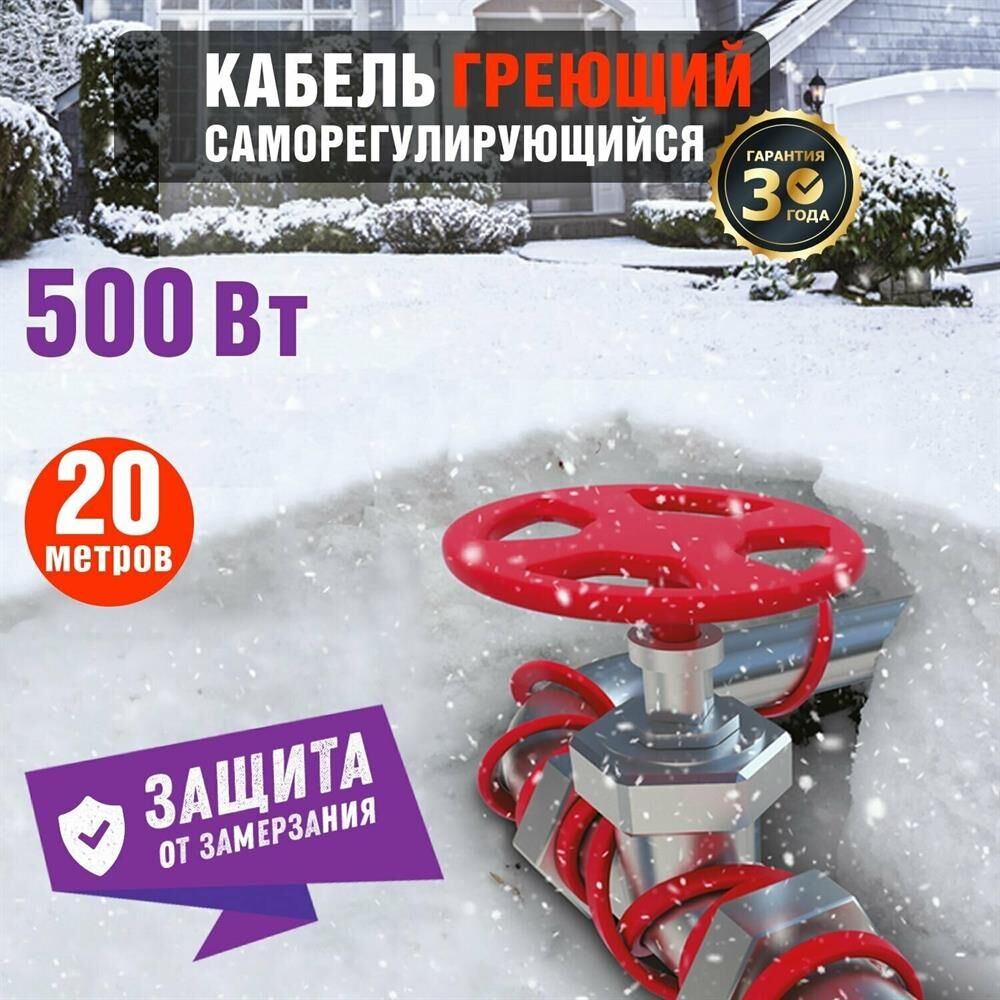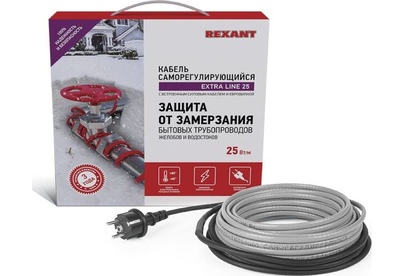 REXANT Кабель греющий саморегулирующийся модель SRL Extra Line 25MSR-PB, на трубу, 20м/500Вт