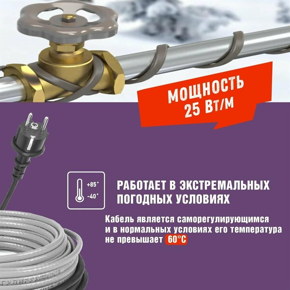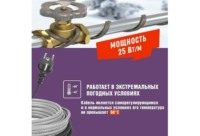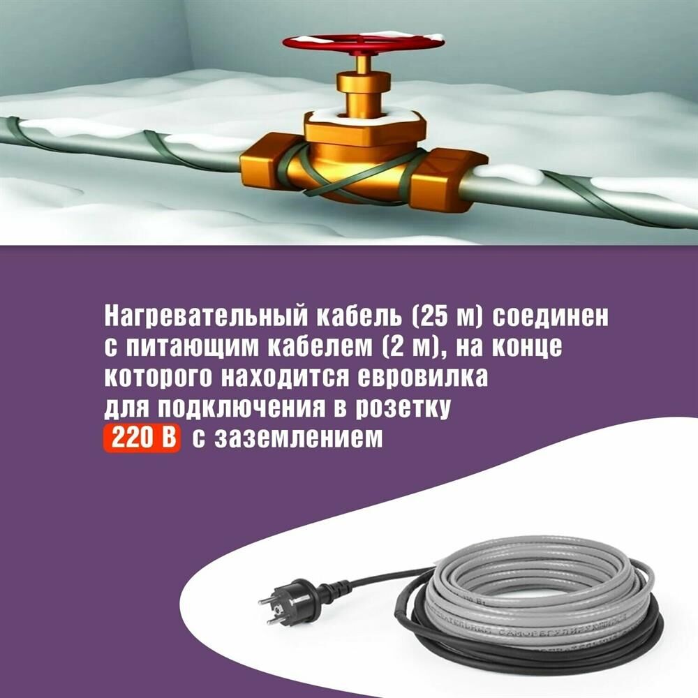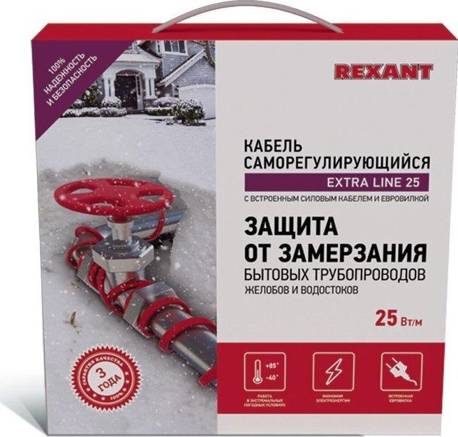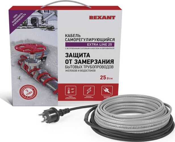 REXANT Кабель греющий саморегулирующийся модель SRL Extra Line 25MSR-PB, на трубу, 25м/625Вт