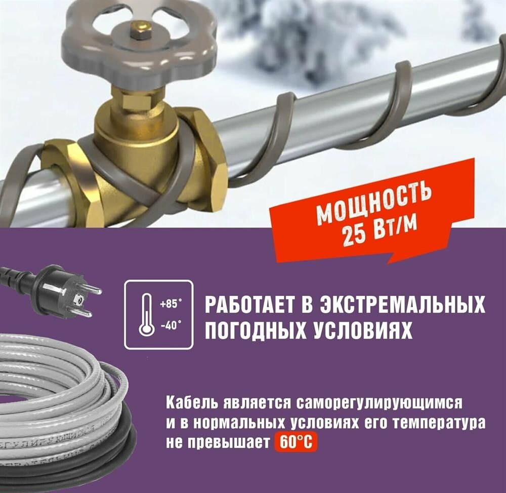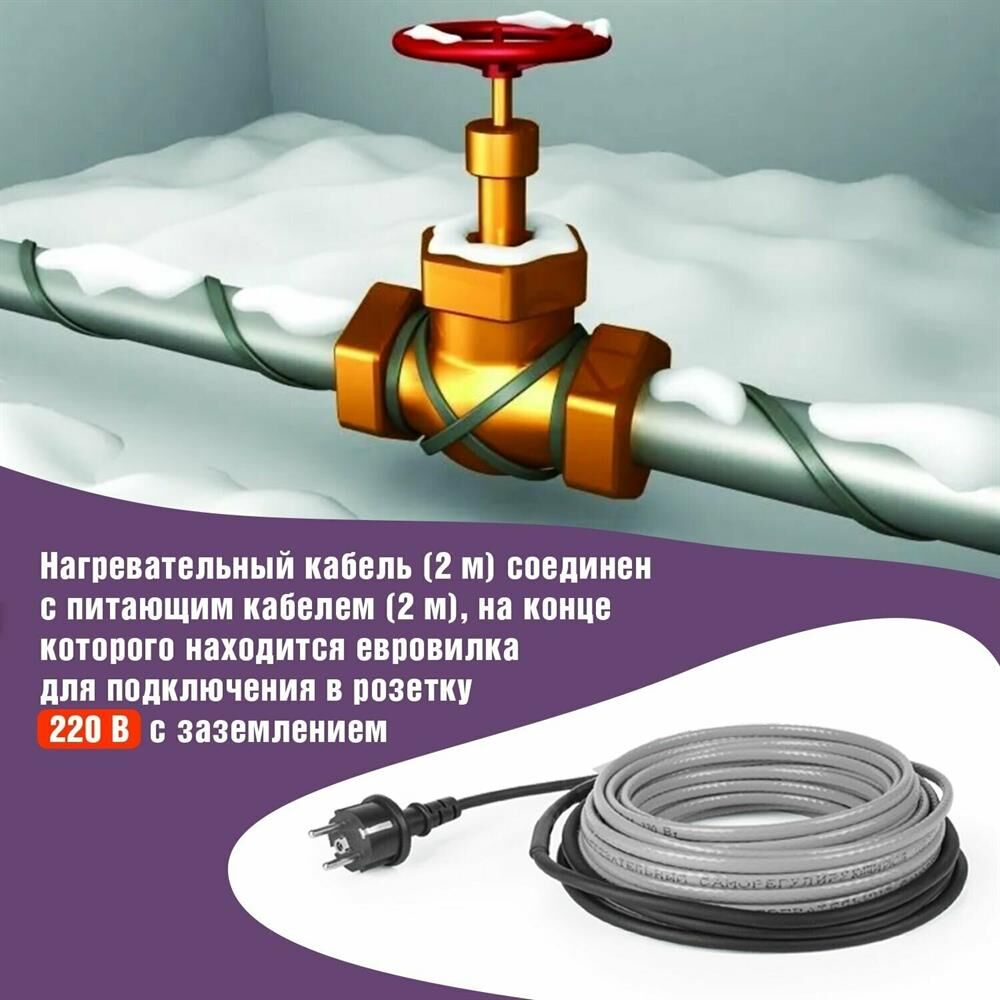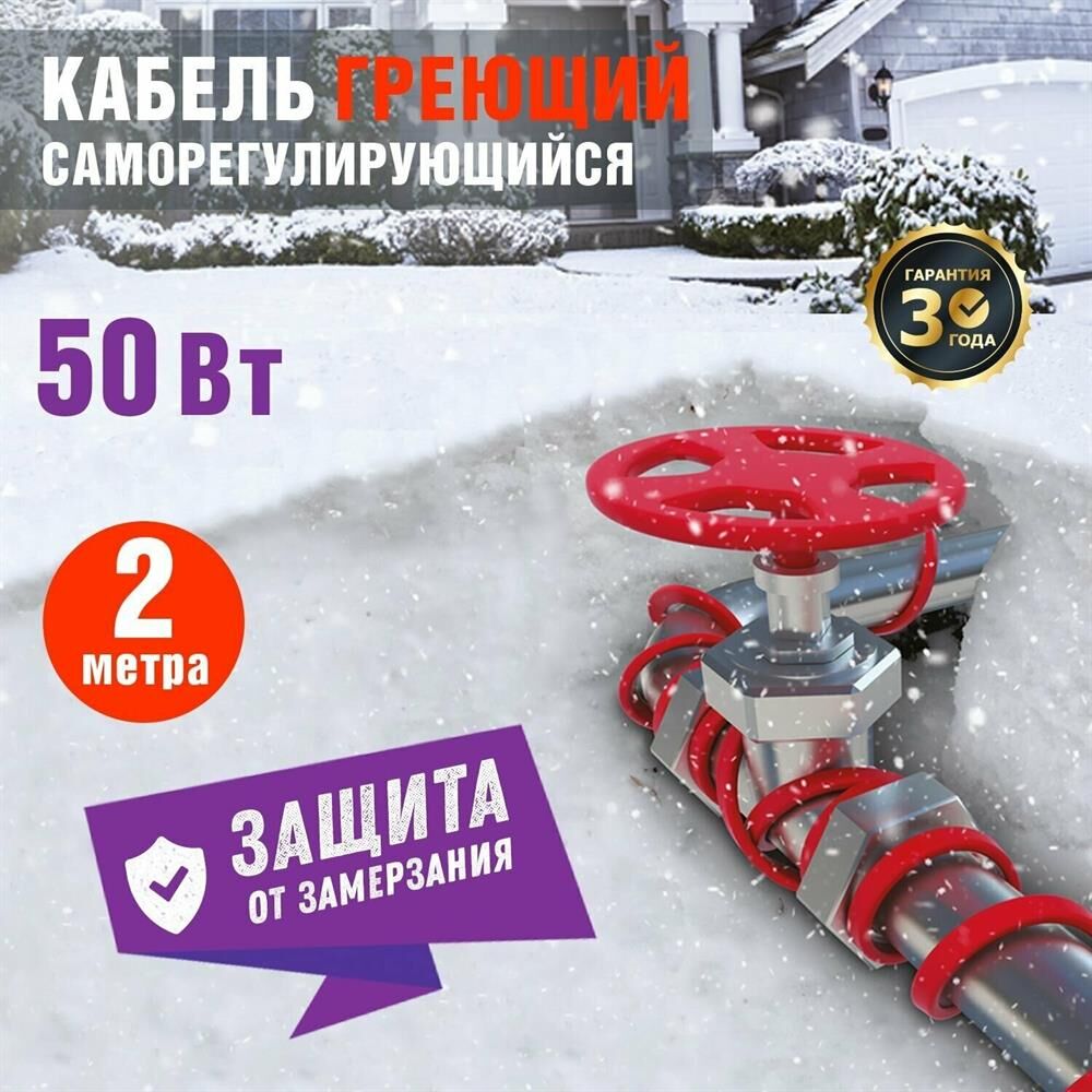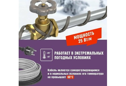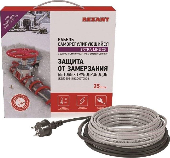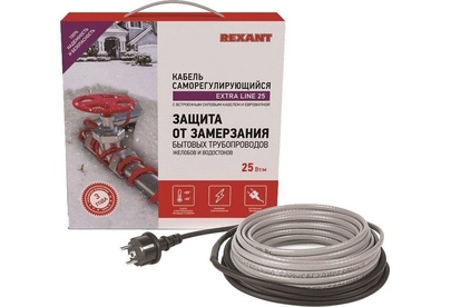 REXANT Кабель греющий саморегулирующийся модель SRL Extra Line 25MSR-PB, на трубу, 2м/50Вт